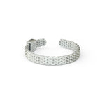 Our craftsmen spin this sterling silver into a wearable shield. This breathable metal mesh will mold to you perfectly for a bespoke, comfortable fit.Our clean, optimized sterling silver is more like a wellness metal, promoting protection and intuition. Charged with the Alchemy of Transformation through VFT, this piece promotes transformation and alignment in your life.