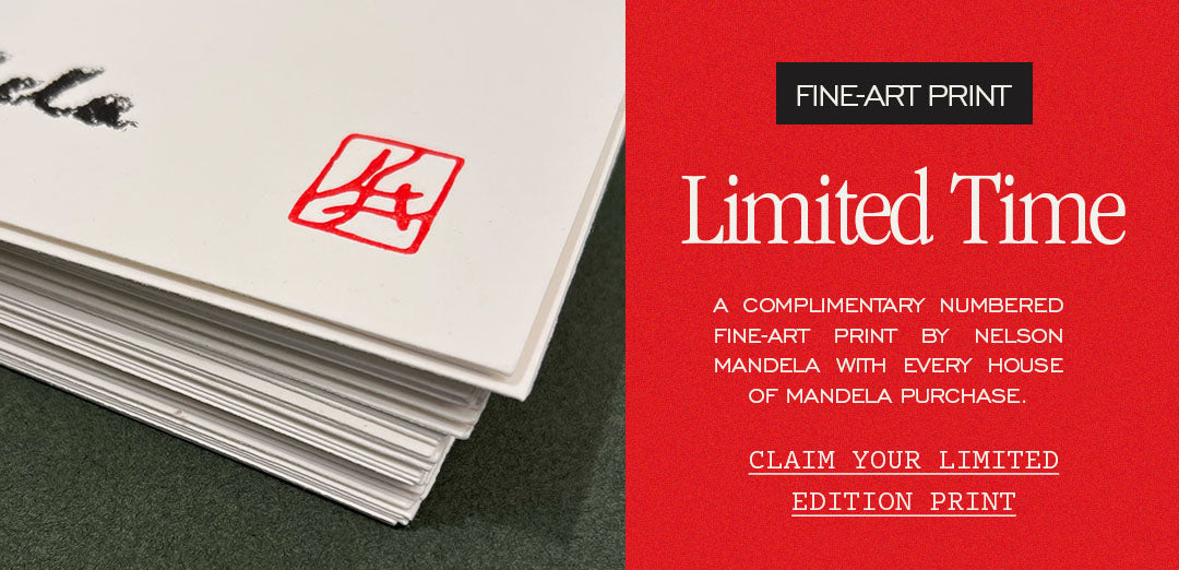 Designed in partnership with the Mandela family, these pieces incorporate original artwork by Nelson Mandela.
