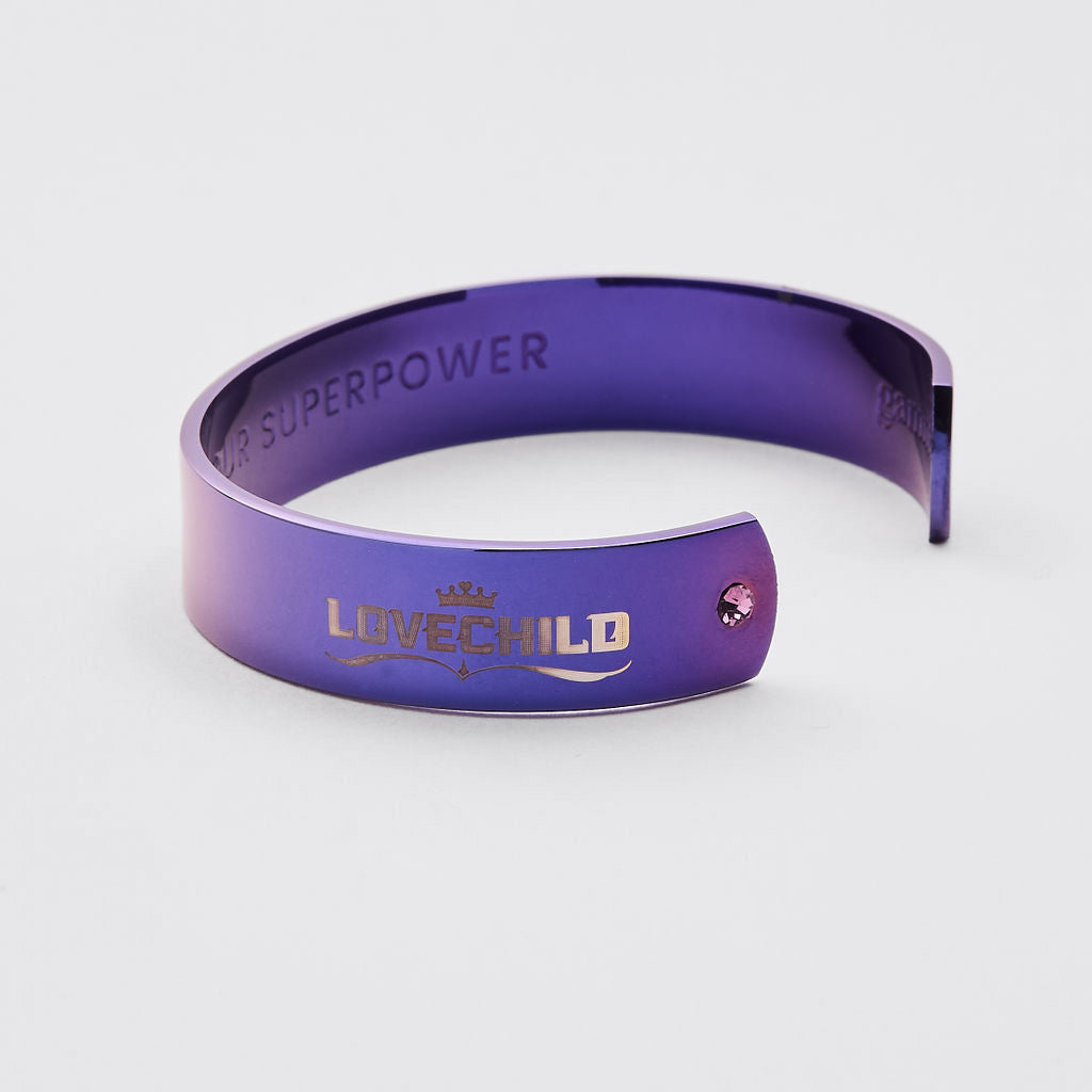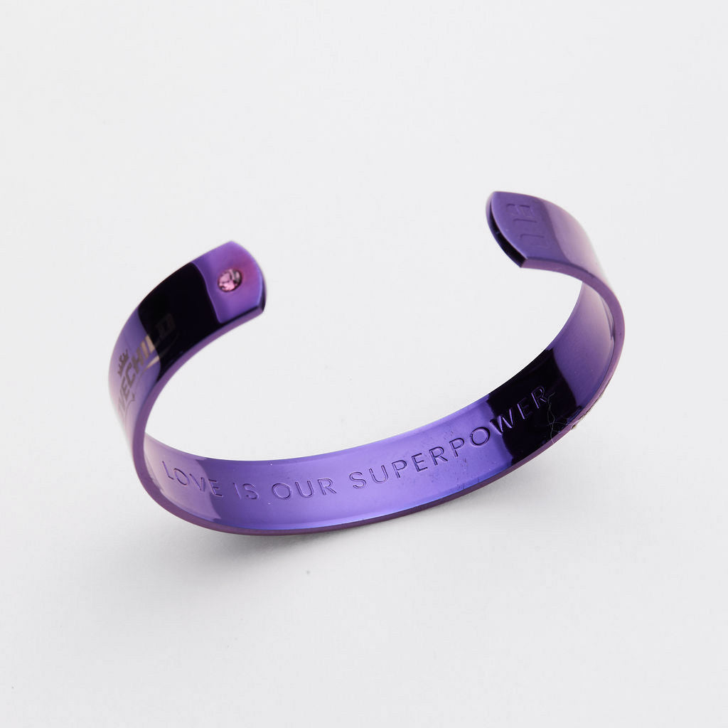 Purple’s always carried a weight—wisdom, connection, royalty—the essence of leading from strength and heart. This purple cuff, paired with its matching crystal, channels that energy daily. Engraved with “Love is our superpower,” it’s here to remind you that when we come from love, we don’t just show up, we show out.