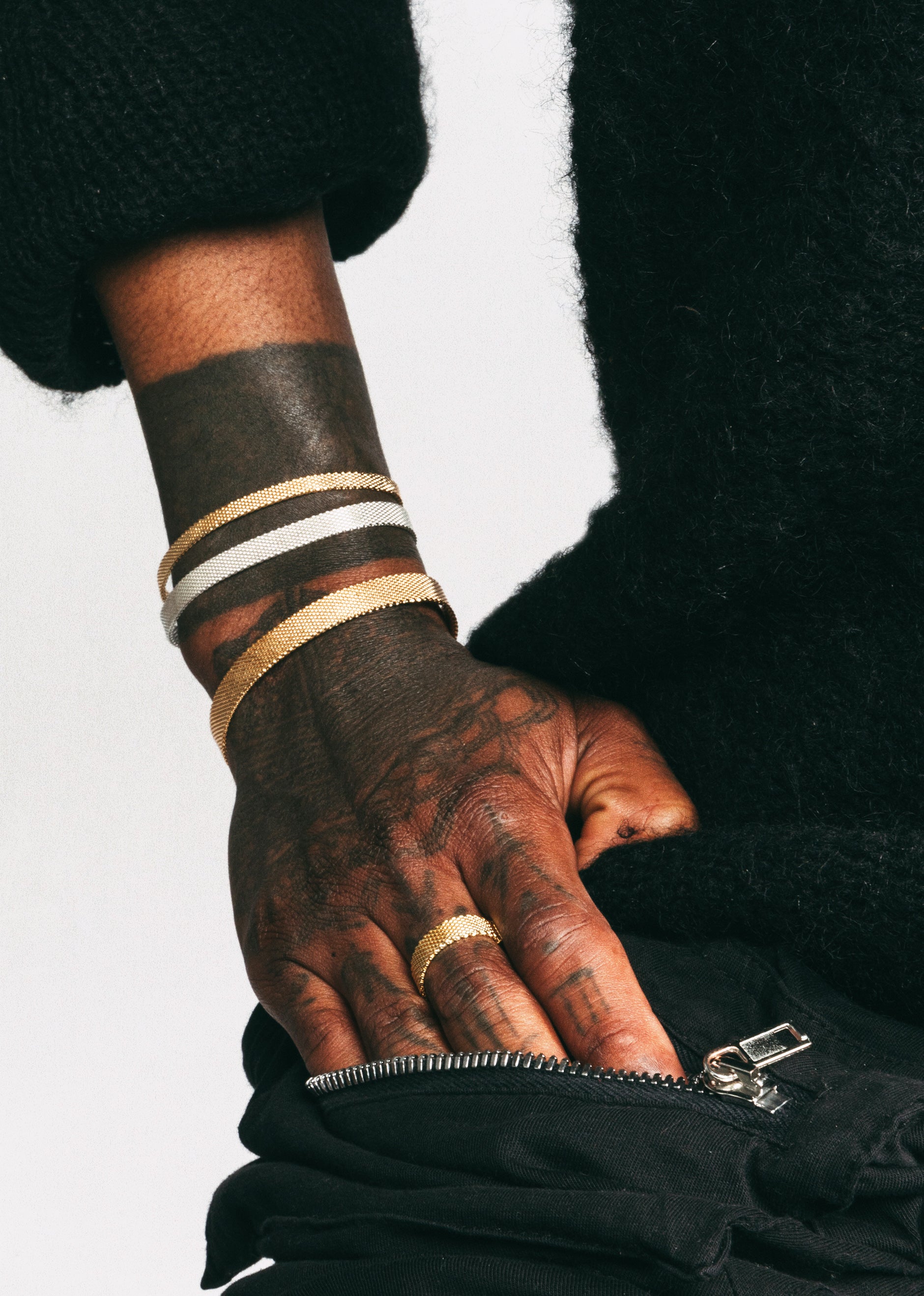 Using century-old machinery, we weave our precious optimized metals into a wearable armor of protection. Woven Armor perfectly conforms to your body— the result: metal that feels good.